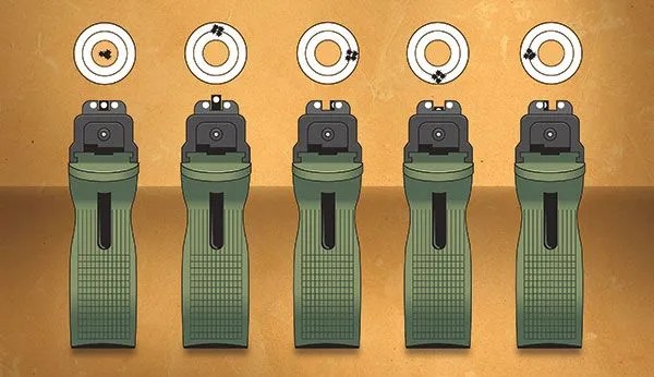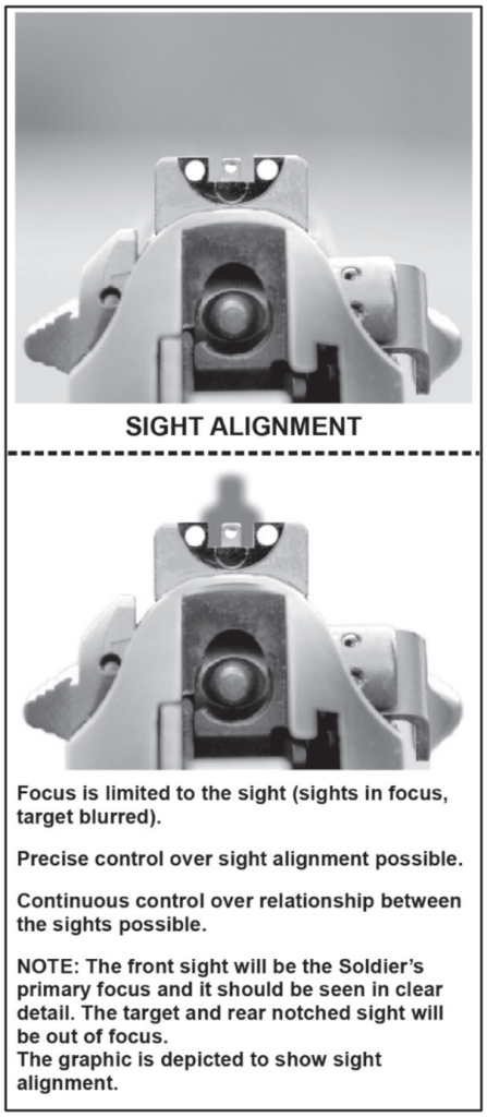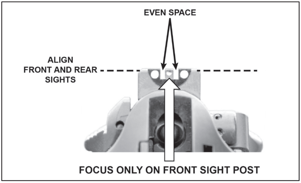 Sight Alignment/Picture: Correctly aligning the sights is crucial for placing shots accurately.